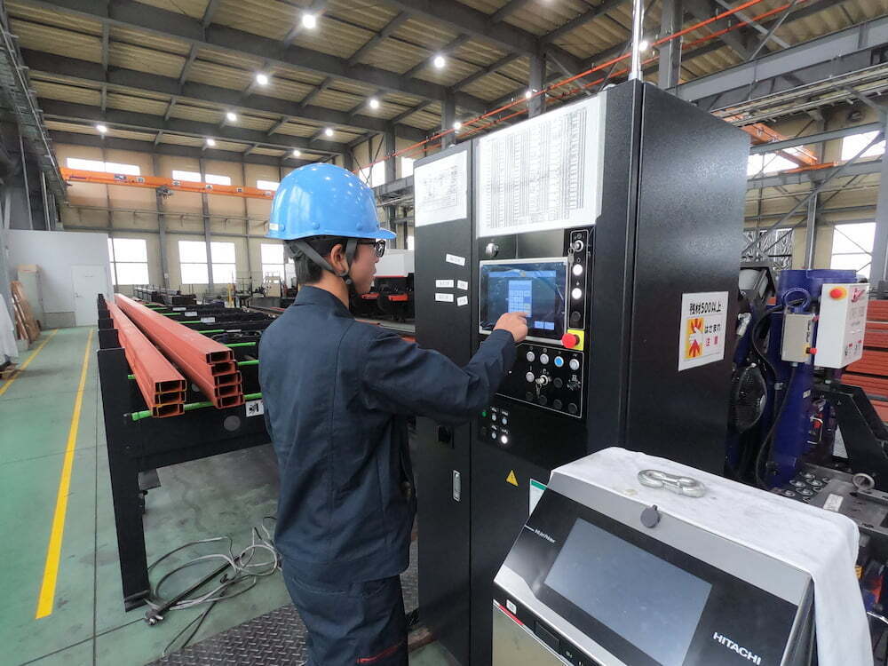 今は建築用のC型鋼の加工を担当していて、ビームワーカーという機械で切断や孔あけを行っています。
